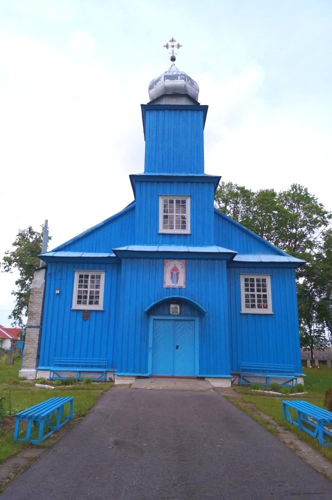 Cтарейший храм на Лидчине. Памятник деревянного зодчества. Построена подскарбием ВКЛ Соллогубом в 1774 году. Церковь деревянная базиликального типа, трехнефовая, прямоугольная в плане, с трехстенной алтарной пристройкой и башней-звонницей на главном фасаде. Башня трехъярусная, завершена лукообразной головкой. Стены церкви в 1869 году вертикально обшиты досками с широкими нащельниками. Освящена 22 октября.1878 года после капитального ремонта (поставлен новый иконостас, создан престол. Положен новый пол, сделаны три двери из притвора в молельный зал).
