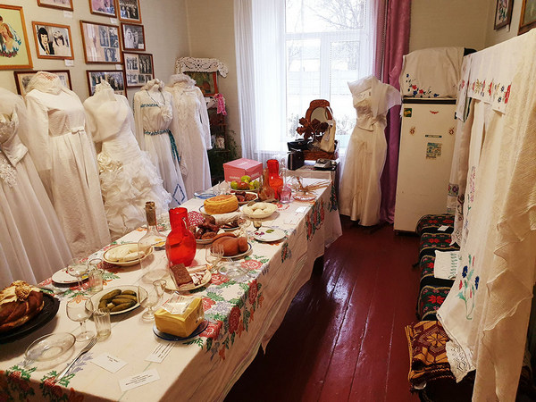 Музей представлен двумя экспозициями. Первая – «Пачатак сямейнага жыцця – вяселле» отображает свадебные традиции белорусской семьи. Представлена экспозиция свадебной атрибутикой 50-х-80-х годов XX века: свадебный стол, свадебные наряды, фотографии молодоженов, приданое невесты, подарки молодым и т.д.