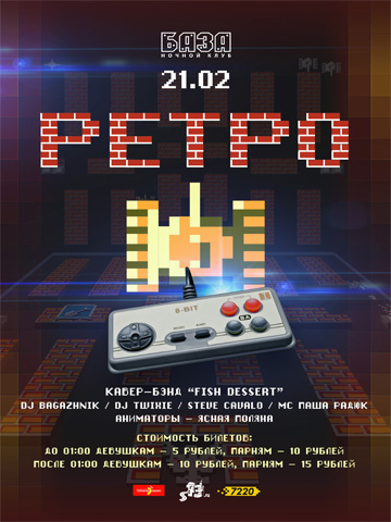 Долгожданное РЕТРО в клубе "БАЗА", которое соберёт лучшую публику в нашем городе, мы будем ждать всех желающих совершить увлекательное и полное сюрпризов музыкальное путешествие во времени! Свои самые лучшие РЕТРО хиты для вас будет исполнять cover band Fish Dessert, а далее продолжим отрываться под отличные треки Dj Bagazhnik (Минск)!! Танцевать и веселится будем всю ночь на пролет.